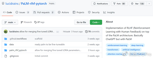 项目地址:https://github.com/lucidrains/PaLM-rlhf-pytorch